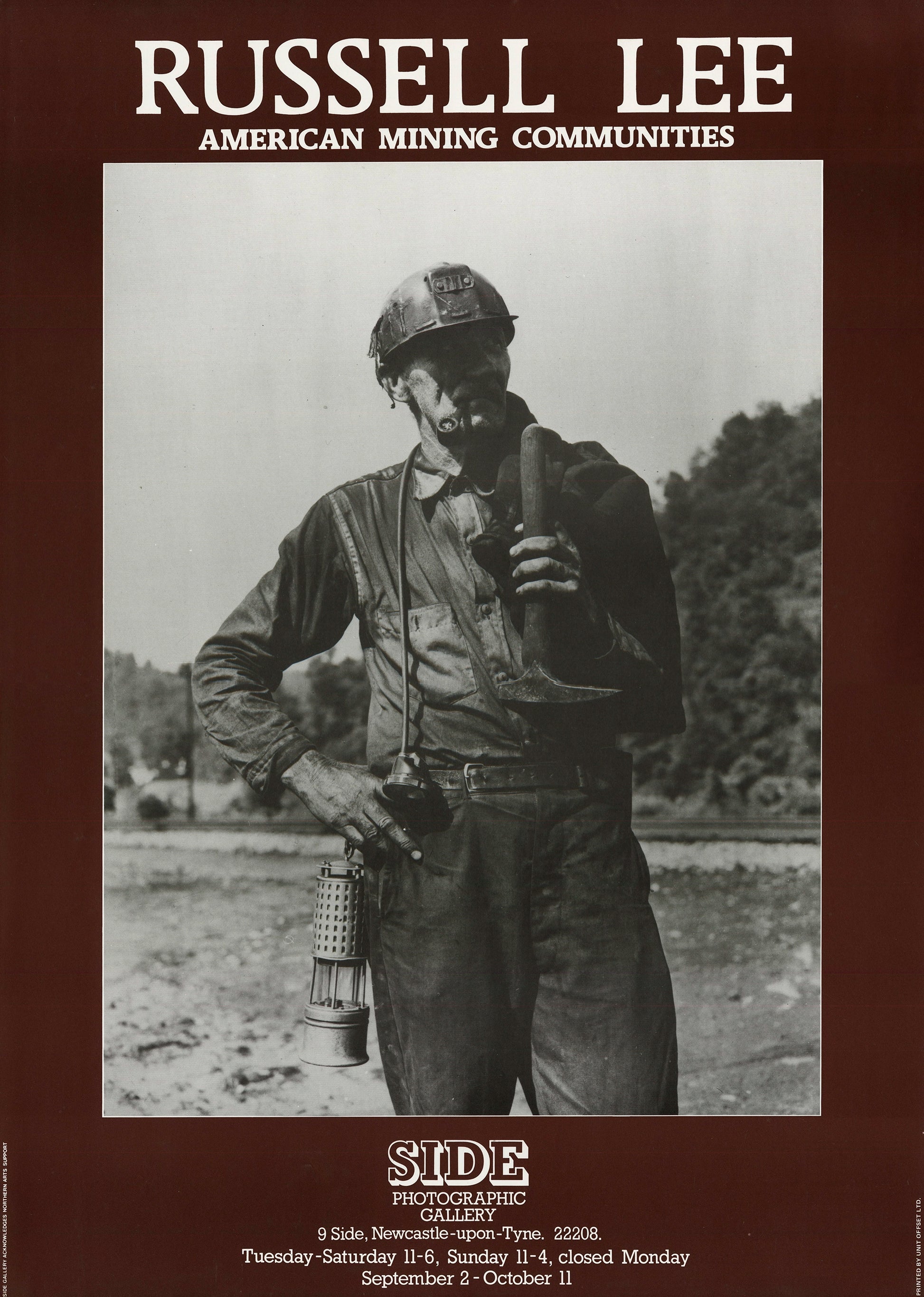 Vintage exhibition poster from the exhibition Russell Lee: American Mining Communities shown at Side Gallery in 1991.