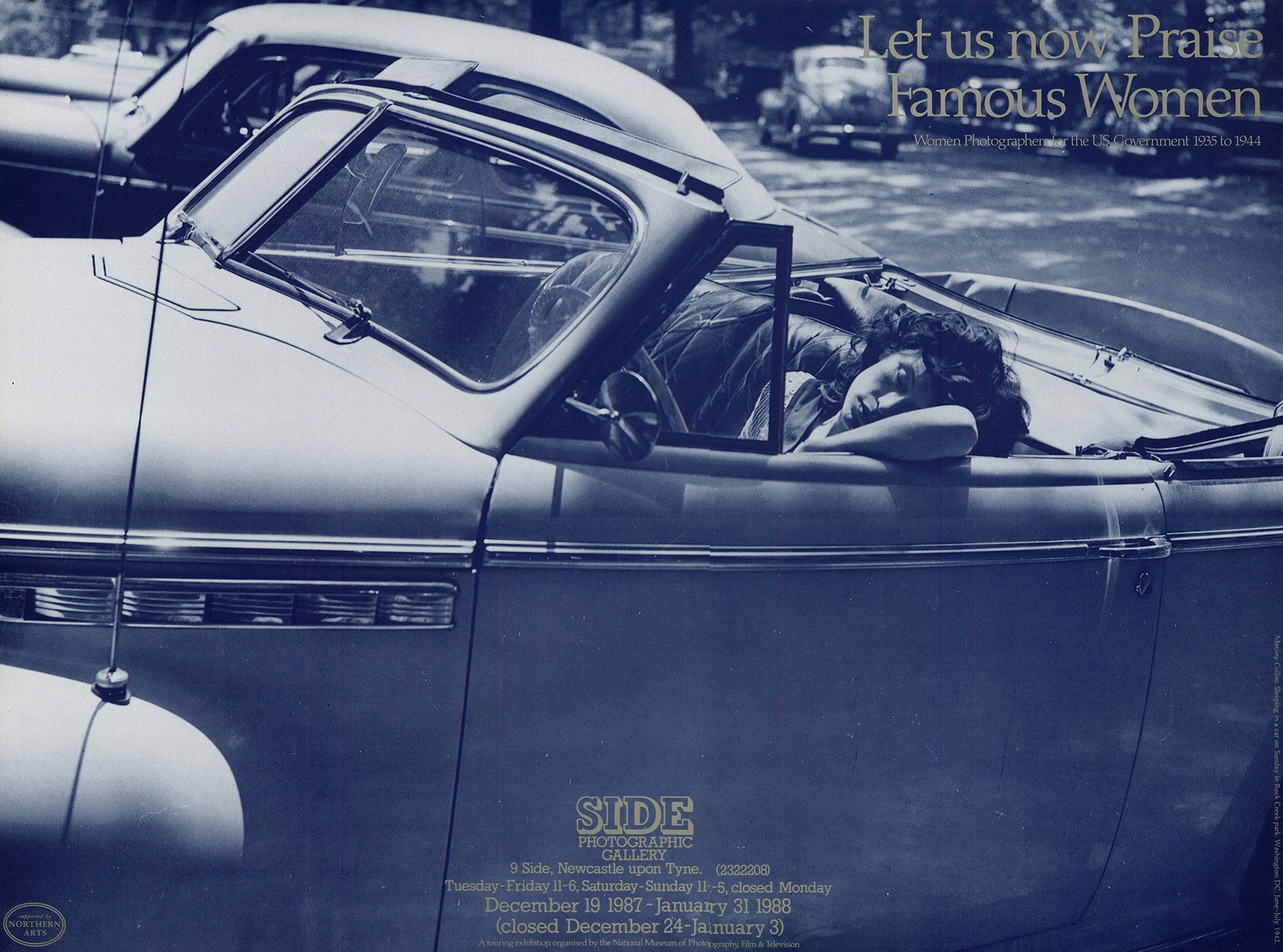 Vintage poster for the exhibition Let Us Now Praise Famous Women: Women Photographers in the U.S. Government 1935–1944, shown at Side Gallery, December 1987 - January 1988.