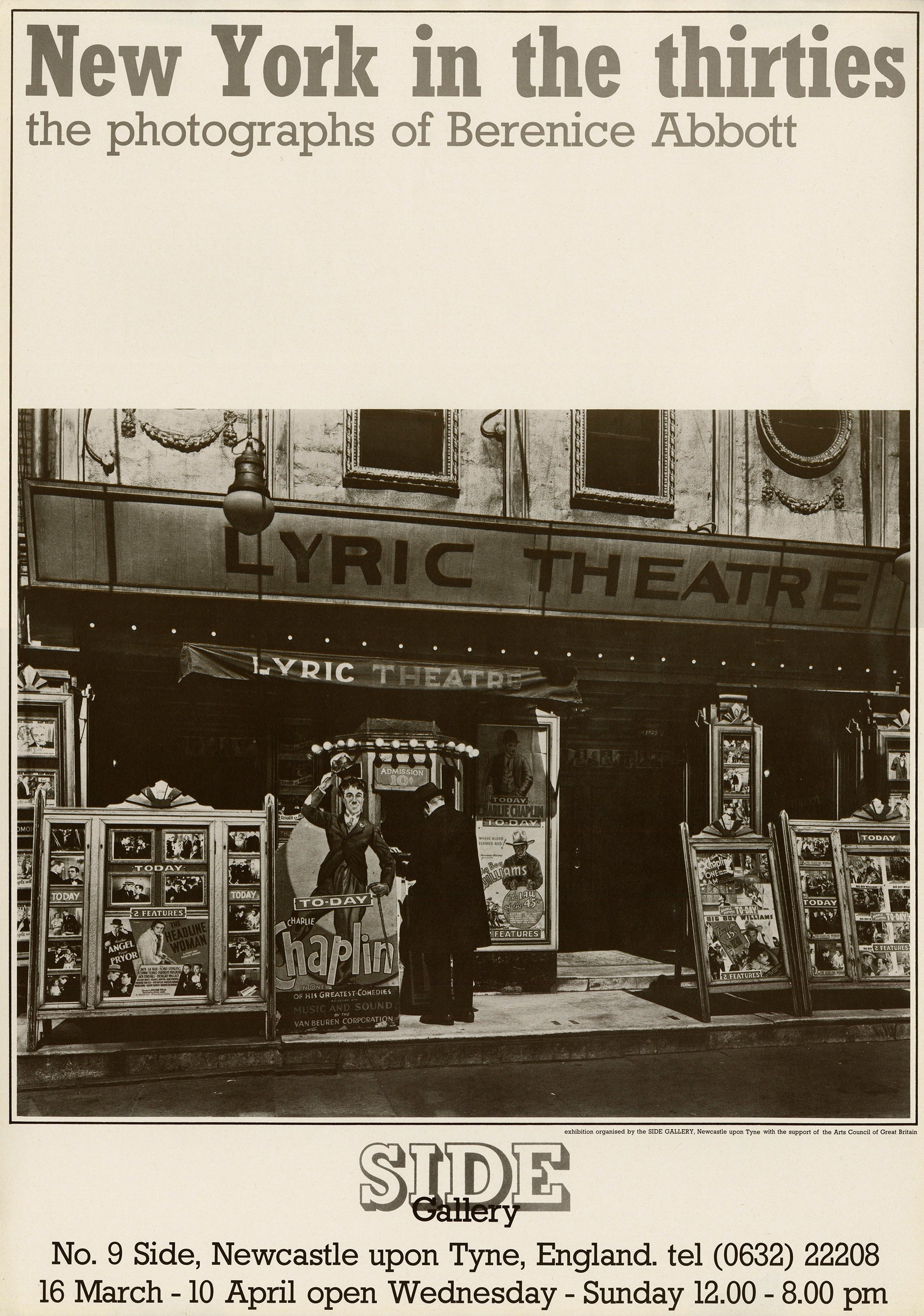 Vintage poster for the exhibition New York in the Thirties: The Photographs of Berenice Abbott, shown at Side Gallery in March-April 1977.
